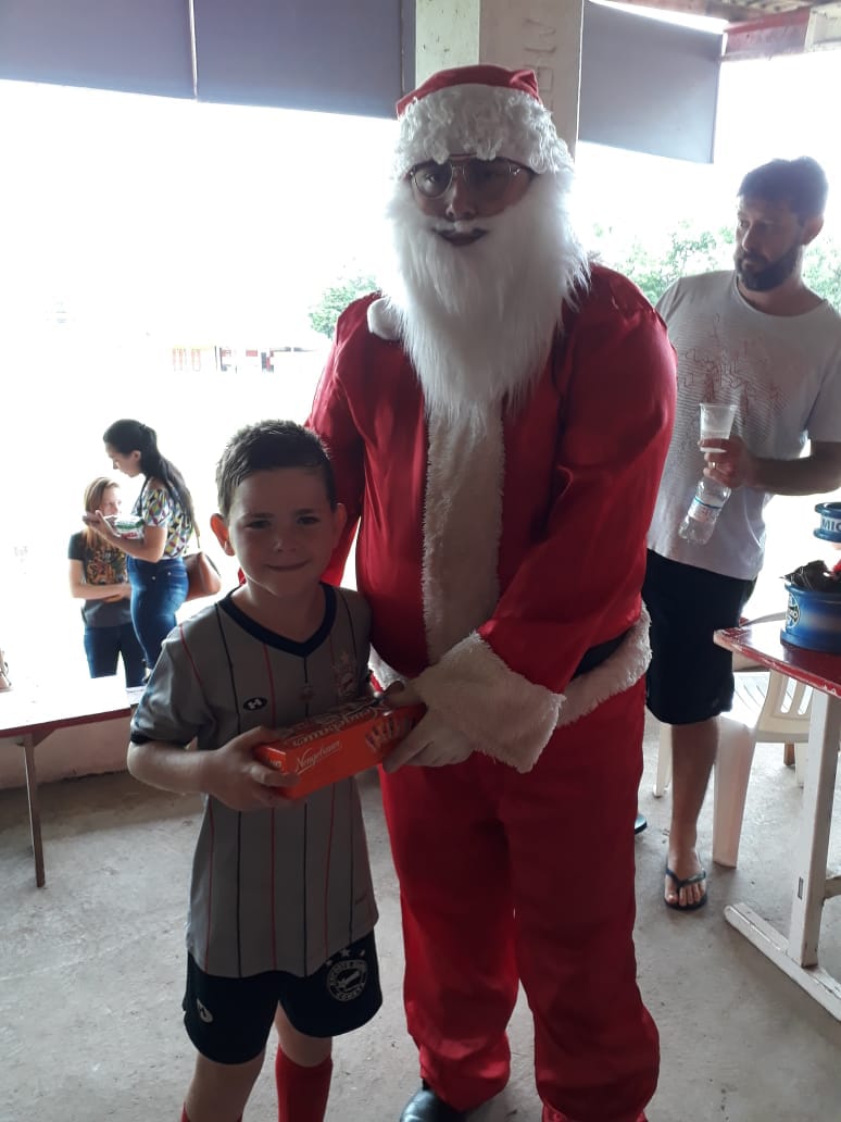 Na manhã de sábado dirigentes e garotos das categorias de base do Cometa estiveream reunidos na sede do clube para as atividades de encerramento para este ano. Teve jogos internos, entrega das fichas de inscrições para 2019, presença do Papai Noel, distribuição de refrigerantes, entrega de presentes para as crianças do Sub-07 até o Sub-12. A diretoria, professores Beto, Dela, Rhuan agradecem a todos pelo comparecimento e confiança dedicada em 2018. Um agradecimento especial à família de Airton Soehn, à D. Elenice e seu filho Arthur pela doação das caixas de bombons.