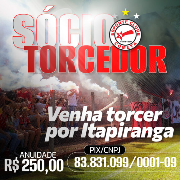 O Esporte Clube Cometa está em busca de novos associados. Visando fazer uma excelente campanha neste ano de 2026 no Campeonato Regional, no Estadual de Amadores e, claro, na busca por títulos, a diretoria vem intensificando os trabalhos na renovação das anuidades junto aos associados e, consequentemente, o aumento do plantel de sócios torcedores. Conforme o presidente Odir, o valor da anuidade permanecerá o mesmo de 2025, que é de R$ 250,00. O pagamento poderá ser feito por meio do PIX do Clube, abaixo assinalado: